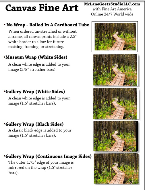 With a canvas print, the image is printed onto a sheet of canvas, and then the canvas is stretched onto wooden stretcher bars that are 1.5" thick.